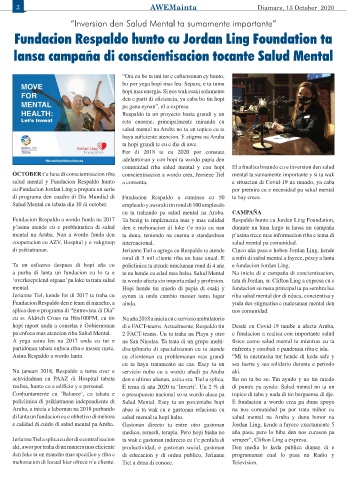 a purba di lanta un fundacion cu lo ta e te na hende cu edad mas halto. Salud Mental Na inicio di e campaña di concientisacion,