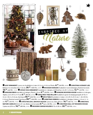 NATURE CANDLES Ø 6.8 x H 7 cm, Battery not included, 6. 99 each, 280 FM, 220030 12 CHRISTMAS BALL SET WOODEN DESIGN