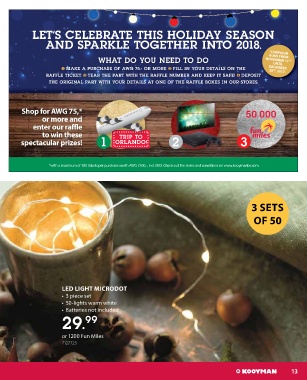 50.000 trip t trip to o orlando! 3 SETS OF 50 LED LIGHT MICRODOT • 3 piece set • 50-lights warm white • Batteries not included 29. 99 or 1200 Fun Miles 7127723 13