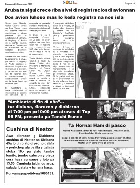 Awe diarazon y Diabierna Galiña, Kalakoena.Tambe ta haci Pisca tempera. Aroz con pollo.