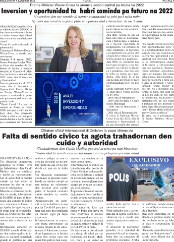 Diamars 4 di januari 2022, tawata prome cu e pandemia. versidad den inversion. Pues