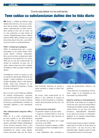 bo sistema inmunologico, causando Na Aruba, unda productonan for di hopi biaha ta contene PFAS.