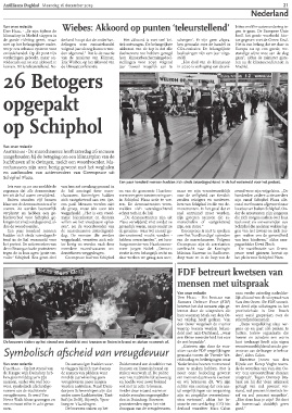 klaar om de demonstranten af te ren paal. Mensen werden niet ren. De demonstranten verza- kers van Schiphol én die van de- maal met bussen afgevoerd naar