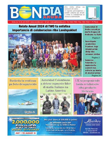 Dialuna 14 di Juli 2025 www.bondia.com Email: noticia@bondia.com Tel: 582-7800 Fax: 582-7044 1,75 Florin