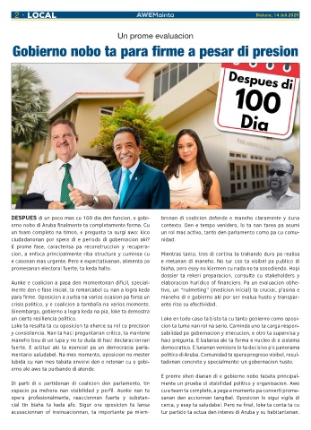 mentario saludabel. Na mes momento, oposicion no mester politico di Aruba. Comunidad ta spera progreso visibel, resul-