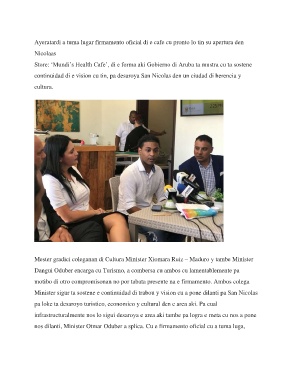Store: ‘Mundi’s Health Cafe’, di e forma aki Gobierno di Aruba ta mustra cu ta sostene