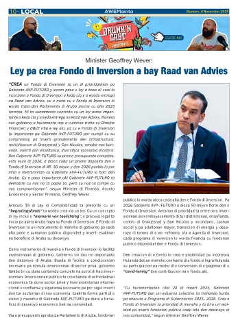 Via e presupuesto aproba pa Parlamento di Aruba, fondonan nos comunidad,” segun minister Geoffrey Wever.