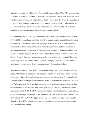 financiero presenta den e Financieel Economisch Memorandum, FEM.” E presupuesto ta