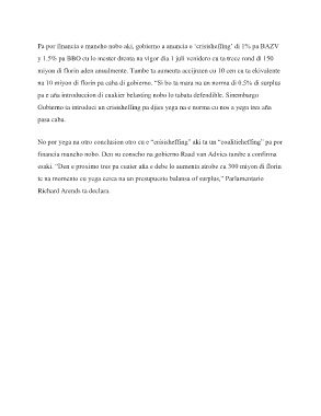 Pa por financia e maneho nobo aki, gobierno a anuncia e ‘crisisheffing’ di 1% pa BAZV