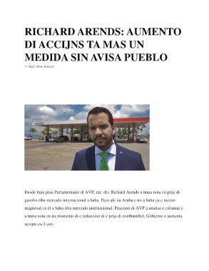 Desde luna pasa Parlamentario di AVP, mr. drs. Richard Arends a tuma nota cu prijs di