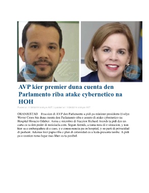 Wever Croes bin duna cuenta den Parlamento riba e asunto di atake cybernetico na