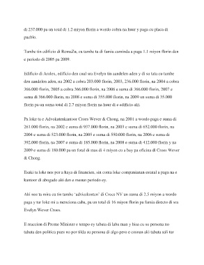 di 237.000 pa un total di 1.2 miyon florin a wordo cobra na huur y paga cu placa di