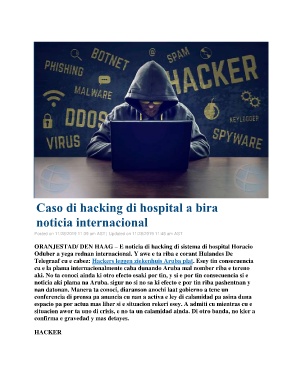 Telegraaf cu e cabez: Hackers leggen ziekenhuis Aruba plat. Esey tin consecuencia