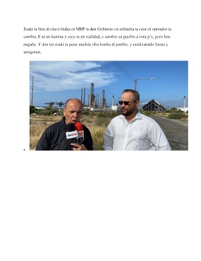 Esaki ta bira di cinco biaha cu MEP ta den Gobierno cu refineria ta cera of operador ta
