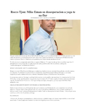 pa corupcion. Y aworaki tin un otro di su ex-ministernan, actual Parlamentario Benny Sevinger, cu ta wordo