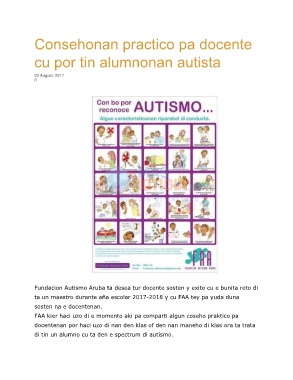 Fundacion Autismo Aruba ta desea tur docente sosten y exito cu e bunita reto di