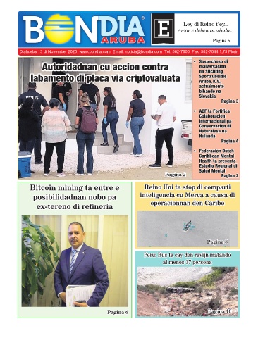 Diahuebs 13 di November 2025 www.bondia.com Email: noticia@bondia.com Tel: 582-7800 Fax: 582-7044 1,75 Florin