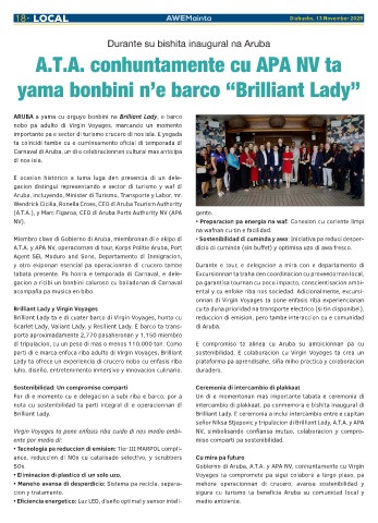 Brilliant Lady ta e di cuater barco di Virgin Voyages, hunto cu reduccion di emision, pero tambe interaccion cu e comunidad