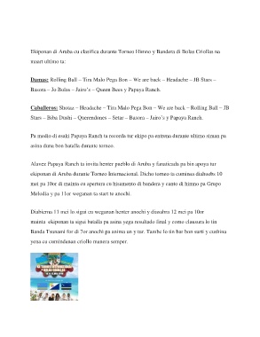 ekiponan di Aruba durante Torneo Internacional. Dicho torneo ta cuminsa diahuebs 10