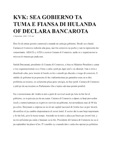 Den fin di siman gremio comercial a manda un carta pa gobierno. Desde cu a funda
