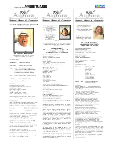2021, 7- 9 PM na Aurora Funeral Home Su bisiñanan/buren: Francis y Famia, Ana Yearwood verpleegster y verplegernan di Cas Kristel, Stichting