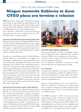 desaroyo di CITGO. Na varios ocasion Prome Minister Pues MEP ta lamenta cu AVP ta trata na crea mas