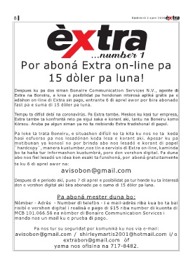 Tempu ta difísil debí na coronavírùs. Pa Extra tambe. Meskos ku kasi tur empresa,