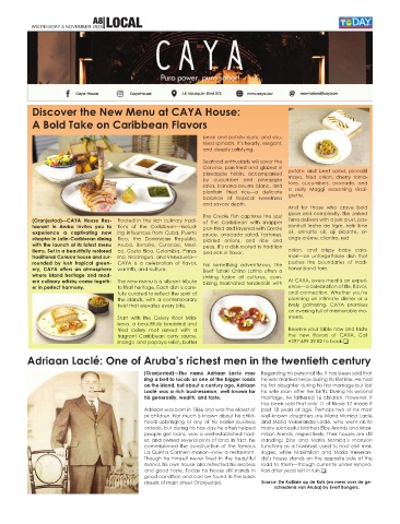 (Oranjestad)—CAYA House Res- Rooted in the rich culinary tradi- of the Caribbean with snapper Tuna delivers with a jerk crust, pas-
