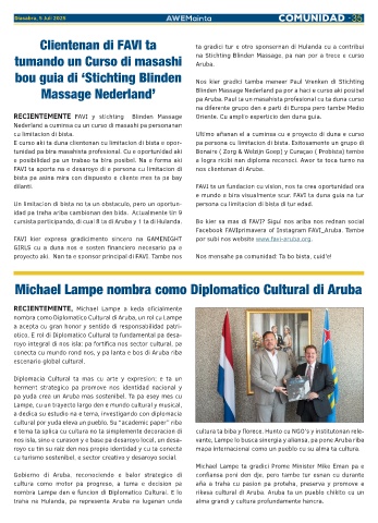 nombra Lampe den e funcion di Diplomatico Cultural. E lo rikesa cultural di Aruba. Aruba ta un pueblo chikito cu un