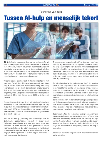 snel ontwikkelt, dreigen structurele personeelstekorten en het Zorg & ICT-congres werd duidelijk dat kunstmatige intel-