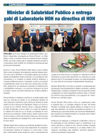 e Laboratorio nobo di HOH, for di Gobierno di Aruba pa man