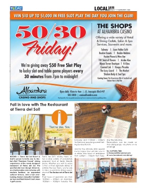 NOORD — Tierra del Sol Resort & Tierra del Sol’s all-day menu of- from 6:00pm – 7:00pm from Tues- W: www.tierradelsol.com/dining/