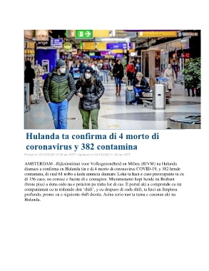 diamars a confirma cu Hulanda tin e di 4 morto di coronavirus COVID-19, y 382 hende