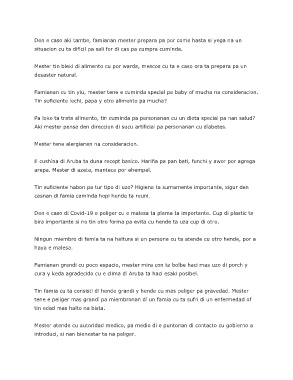 Den e caso aki tambe, famianan mester prepara pa por come hasta si yega na un