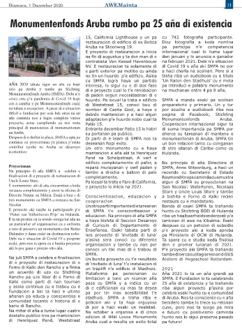 AÑA 2020 tabata sigur un aña cu hopi interesa, lo sigui cu e di dos fase pa introduci e palabra monumento