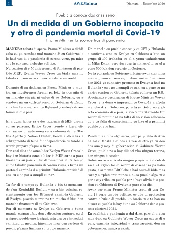 Durante di su declaracion Prome Minister a mus- Hulanda y cu e no a cumpli cu nan, cu a pone cu na