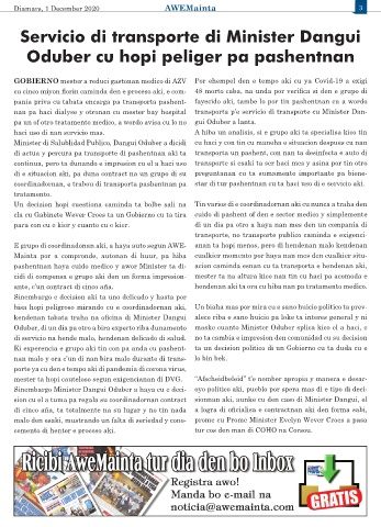 nan pa haci dialyse y otronan cu mester bay hospital transporta p’e servicio di transporte cu Minister Dan-