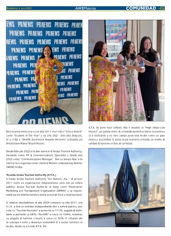 Desde februari 2022 e ta den servicio di Aruba Tourism Authority,