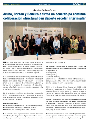 entre Aruba, Boneiro y Corsou. E pais anfitrion lo ta respon- nidad deportivo Caribense den un vision comun: Deporte