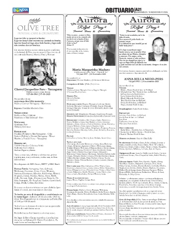 Olive Tree Funeral Care & Crematory na Piedra Plat Nos disculpa si den nos tristesa nos por a lubida di menciona Acto di despedida di Sra. Anna ta tuma lugar Diabierna