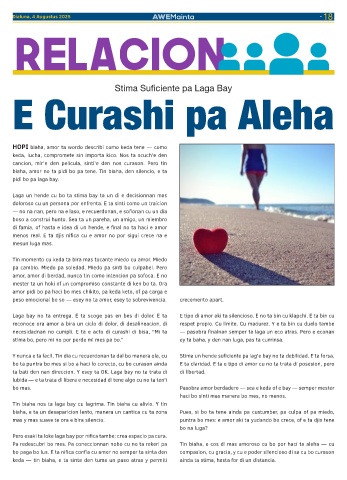 reconoce ora amor a bira un ciclo di dolor, di desalineacion, di respet propio. Cu limite. Cu madurez. Y e ta bin cu duelo tambe