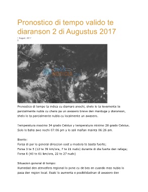 Pronostico di tempo ta indica cu diamars anochi, shelo lo ta levemente te