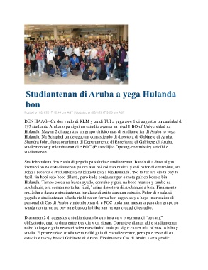 Studiantenan di Aruba a yega Hulanda
