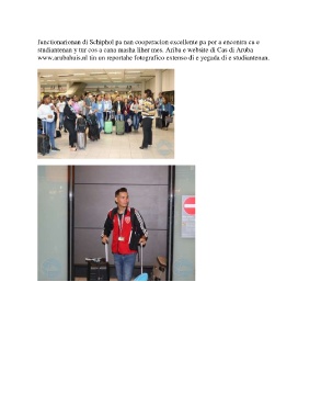 functionarionan di Schiphol pa nan cooperacion excellente pa por a encontra cu e studiantenan y tur cos a cana masha liher mes. Ariba e website di Cas di Aruba www.arubahuis.nl tin un reportahe fotografico extenso di e yegada di e studiantenan.