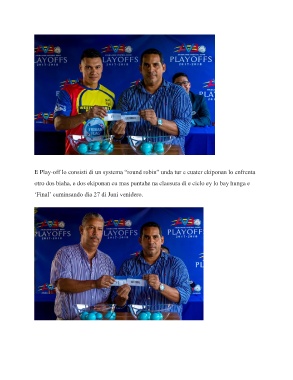 E Play-off lo consisti di un systema “round robin” unda tur e cuater ekiponan lo enfrenta otro dos biaha, e dos ekiponan cu mas puntahe na clausura di e ciclo ey lo bay hunga e ‘Final’ cuminsando dia 27 di Juni venidero.