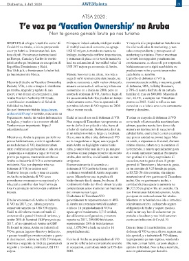 cu Aruba su industria di VO ta un aereo. Mirando cu nan ta prefera di mantencion of otro gastonan di Timeshare