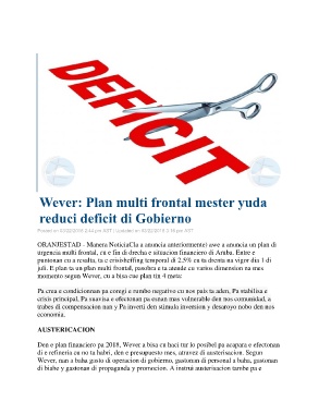 di e refineria cu no ta habri, den e presupuesto mes, atravez di austerisacion. Segun