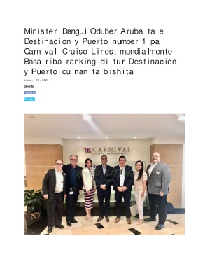Minis ter Dangui Oduber Aruba ta e Dest inac i on y Puerto number 1 pa Carn iva l Cruise L i nes, mundia lmente Basa r iba rank ing di tur Dest inac ion y Puer to cu nan ta b ish i ta January 20, 2020 SHARE Facebook Twi t ter