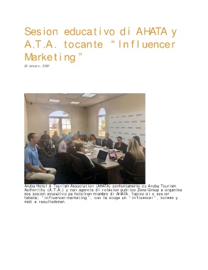 Aruba Hote l & Tour i sm Assoc ia t ion (AHATA) conhuntamente cu Aruba Tour ism