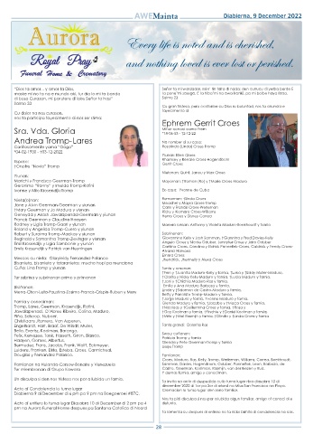 Acto di entiero lo tuma lugar Diasabra 10 di December di 2 pm pa 4 defunto.